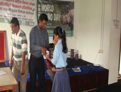 Prize distribution to school children's in the Third International Rhino Day Program, 2012, Sauraha, Chitwan